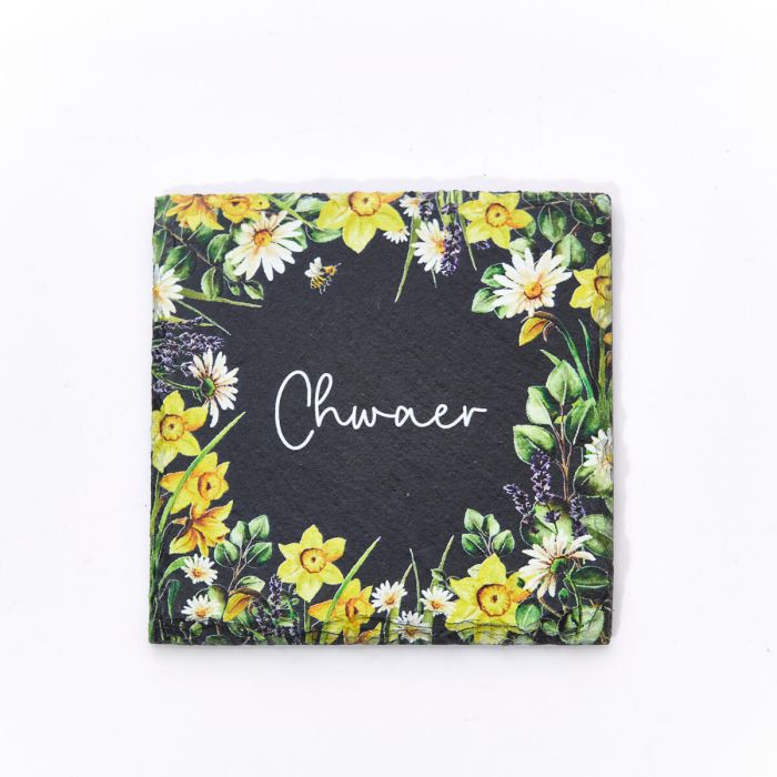 Welsh Floral Slate Coaster - Ffrind / Nain / Chwaer